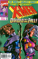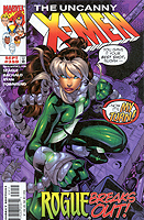 Issue - Uncanny X-Men #359 Summary - Haunted by the memory of the night she "expressed her love" for Gambit, Rogue has agreed to participate in a procedure that will potentially rid her of her powers forever. But Mystique, who has been posing as the wife of a senator and trying to thwart plans to find a way to render mutants "inert," learns of her foster-daughter's intentions and interrupts the procedure. Back at her apartment, she tries to convince Rogue not to go through with it, telling her that it is part of a plan to irradicate mutants, and that if her test proves successful, it will be used as a weapon. In order to determine if Mystique is telling the truth, she absorbs her, then infiltrates the lab and absorbs the head scientist's memories. She learns that while the scientist has created his machine in order to help his sister (a mutant who looks like a monster), the government has its own ideas how the technology should be applied. Rogue admits that she'd like to let him take her powers away, but she can't let him because she doesn't want the procedure to be used on unwilling participants. She destroys the machine and returns to the X-Men. Meanwhile, in Anchorage, Jean Grey is recovering from an attack via the psi-plane that has resulted in the loss of her telepathy. Cyclops is ever present by her side. Significance - Rogue cites two reasons for wanting her powers negated - she wants to be able to hold a lover, and maybe a child in the future, in her arms. When Mystique morphs into Gambit to make a point, Rogue throws her through a window and warns that if she doesn't change form, she'll rip Gambit's face off her. |