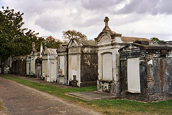 The left pic is a postcard from an undisclosed cemetery, and the right one is a photo I took in Lafayette Cemetery #1 (in the Garden District).